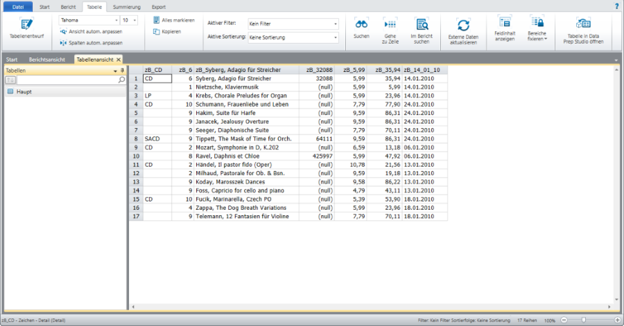 Der Bericht wird in der Berichtsansicht angezeigt. Wenn für diesen Bericht ein Modell definiert wurde, werden die Daten in der Tabellenansicht ebenfalls aktualisiert.