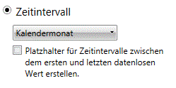 Bei Auswahl dieser Option werden rechts im Bearbeitungsfeld „Zeitintervallwerte“ die Zeitintervalle aufgelistet, die den Bereich der für das Schlüsselfeld derzeit vorhandenen Datums-/Uhrzeitswerte umfassen, und zwar auf Basis des Anwendungsfilters der Summierung.