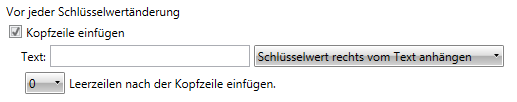 Markieren Sie das Kästchen neben Zwischensummenzeile einfügen, wenn eine Leerzeile nach einer Zwischensummenzeile oder einer Schlüsselwertänderung eingefügt werden soll.