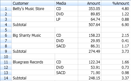 Durch Verhinderung doppelter Werte können in einem Bericht die redundanten Informationen erheblich reduziert und gleichzeitig Details hervorgehoben werden. Monarch Classic ist ebenfalls mit solch einer Vorrichtung ausgestattet, so dass Sie Doppelwerte in den Schlüsselfeldern der Summierung verhindern können.