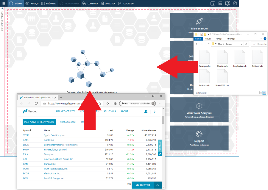 Faites glisser un fichier vers la fenêtre Préparer. Cette action charge immédiatement les données dans la fenêtre Préparer.