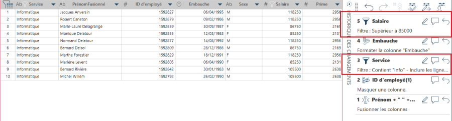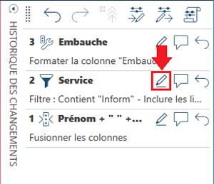 Les filtres sont enregistrés dans le volet de l’historique des changements. Vous pouvez donc facilement revoir ou modifier une modification de filtre depuis la liste de l’historique des changements également.
