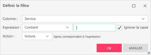 La colonne que vous avez sélectionnée s’affiche automatiquement dans le champ Colonne. Si vous voulez modifier cette colonne, utilisez le menu déroulant sur la droite du champ.