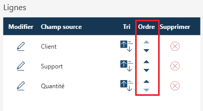2. Modifiez l’ordre des valeurs en cliquant sur les boutons permettant de les déplacer vers le haut/le bas dans la colonne Ordre des volets Lignes/Éléments/Mesures.