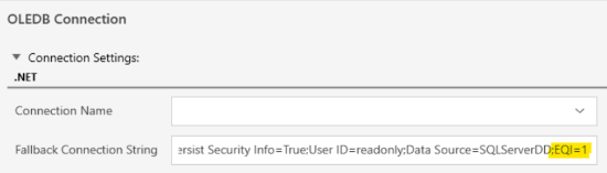 Ajoutez « EQI=1 » à la chaîne des paramètres de connexion :
