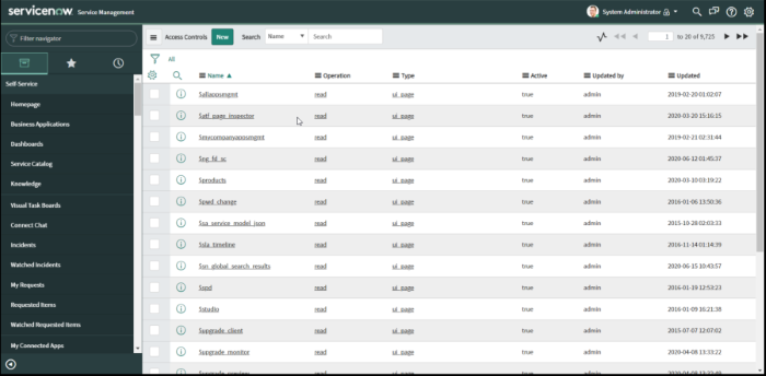 Donnez accès à la table sys_db_object en tapant Access Control dans le navigateur de filtres.