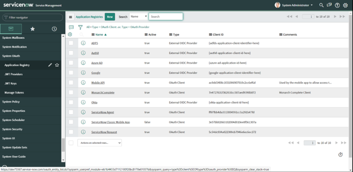 Dans le Navigator, cliquez sur System OAuth -> Application Registry.