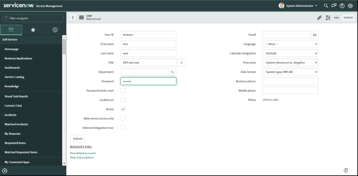La procédure décrite ci-dessous démontre comment créer un utilisateur test pour ServiceNow. Les étapes décrites ici sont basées sur la section Before Authenticating du guide de mise en route de CData: http://cdn.cdata.com/help/BNF/odbc/pg_connectiono.htm.