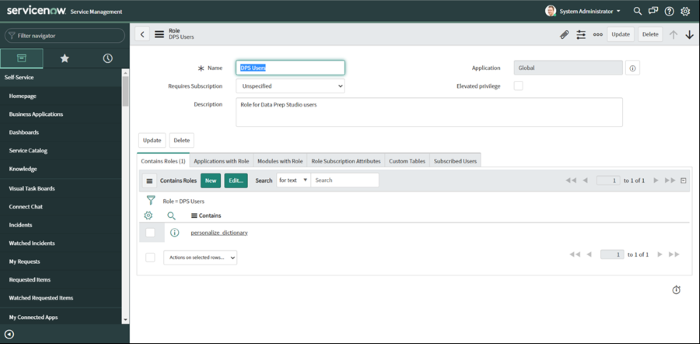Modifiez Contains Roles et ajoutez au rôle : « personalize_dictionary ». Ne manquez pas de cliquer sur Update en haut à droite de la page :