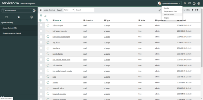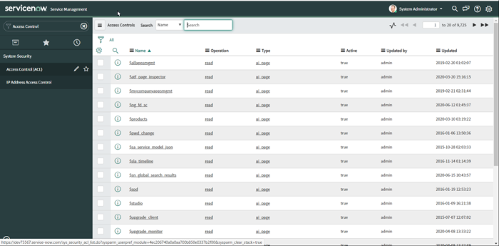 Il n'y a à ce stade pas de bouton New ni d'option d’ajout d'une nouvelle ACL. Pour ce faire, vous devez élever votre permission au rang de security admin en suivant les étapes ci-dessous.