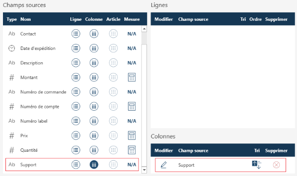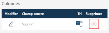 Si vous changez d’avis et ne voulez plus utiliser le champ sélectionné comme colonne, supprimez-le du volet Colonnes en cliquant sur l’icône Supprimer sur sa droite.