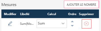 Si vous changez d’avis et ne voulez plus utiliser le champ sélectionné comme mesure, supprimez-le du volet Mesures en cliquant sur l’icône Supprimer sur sa droite.