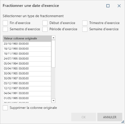 Décomposez un champ de date en fonction de ses parties fiscales :