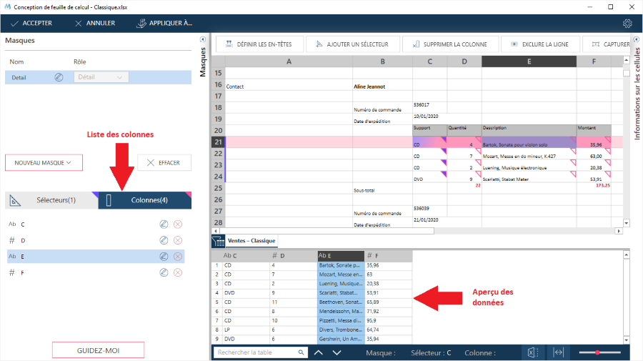 Si les sélecteurs définissent comment sont extraites les données, les colonnes définissent quelles données sont extraites.