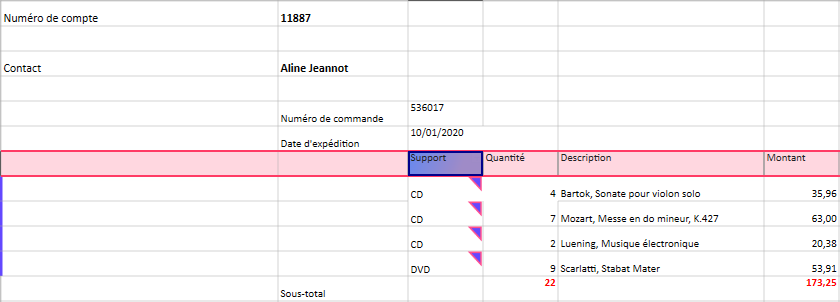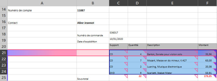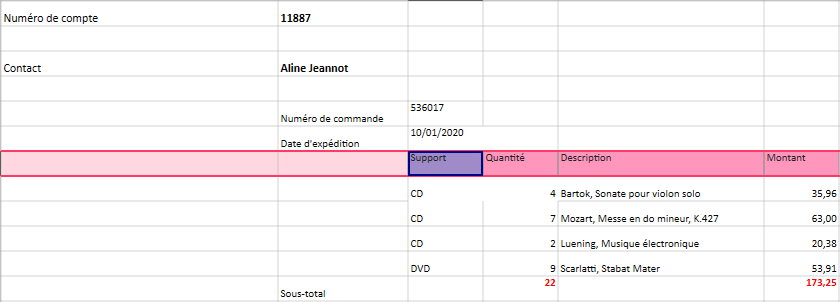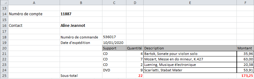 Nous pouvons sélectionner/capturer le numéro de commande (cellule C18) avec les propriétés suivantes :