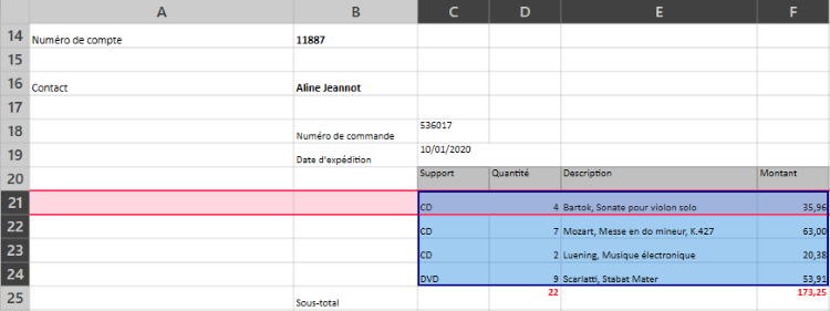Sélectionnez une cellule au-dessus d’un détail ou d’un ajout existant. La cellule est mise en surbrillance.