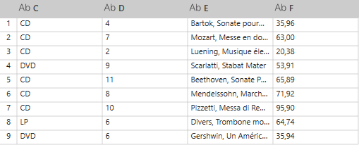 La conception de feuille de calcul peut différencier et extraire toutes les valeurs des cellules de la colonne C, même si elles ont les mêmes propriétés de police et d’alignement, car elles ont des types de valeur différents.