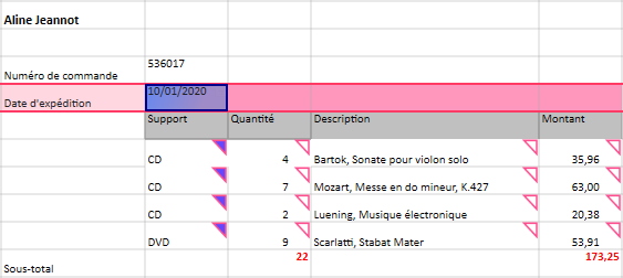 Nous pouvons sélectionner/capturer la date d’expédition (cellule C19) avec les propriétés suivantes :
