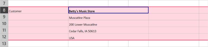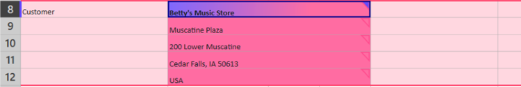 Dans cet exemple, nous sélectionnons/capturons le nom du client, puis nous définissons les colonnes des lignes d’adresse :