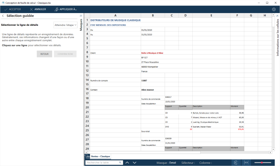 Avec cette méthode, vous sélectionnez ou désélectionnez les lignes de détail et l’assistant essaie d’ajuster les sélecteurs pour satisfaire vos critères de sélection.
