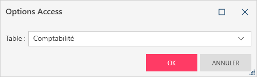 Cliquez surOK pour accepter et enregistrer vos changements. La boîte de dialogue se ferme et les paramètres configurés s’appliquent à la table correspondante.
