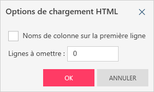 Spécifiez si la première ligne de la table HTML inclut les noms de colonne et un nombre de lignes à omettre, si nécessaire.