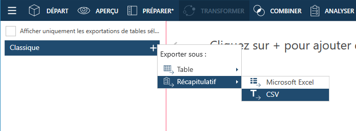 Ajouter une exportation à droite de la table à partir de laquelle vous avez créé un récapitulatif, puis sélectionnez Exporter sous > Récapitulatif > CSV.
