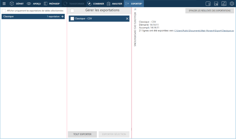Une fois l’opération d’exportation terminée, le panneau des résultats de l’exportation s’affiche. Si l’exportation a réussi, un lien d’exportation s’affiche. Cliquez sur ce lien pour ouvrir le dossier dans lequel vous avez enregistré le récapitulatif exporté.