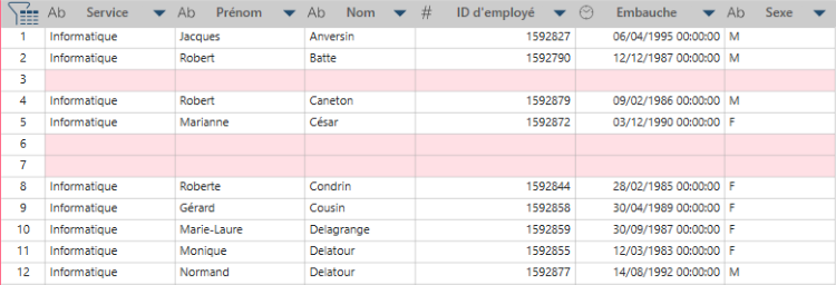 Si vous supprimez les lignes vides, votre table se présente comme suit :