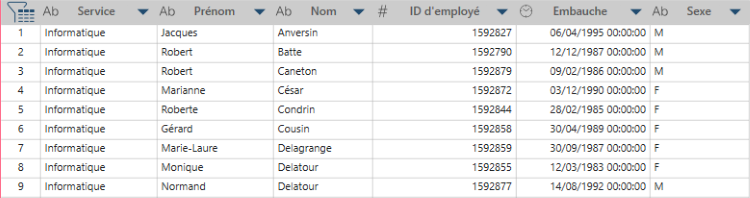 Par exemple, la colonne Nom du
