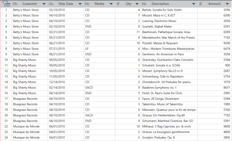 Par exemple, les enregistrements de ce type, qui contiennent Clients, Articles et Quantités :