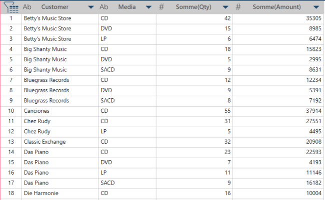 Dans l’exemple ci-dessus, nous incluons Qté au groupement et nous avons sélectionné Somme comme agrégation.