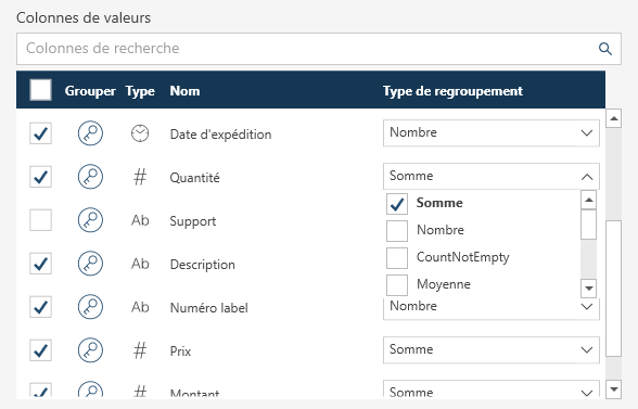 Le cas échéant, sélectionnez l’opération d’agrégat à utiliser.