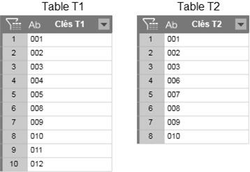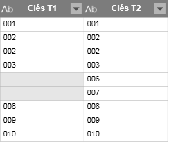 ATTENTION : Si vous souhaitez que Monarch Data Prep Studio analyse vos deux tables et vous recommande des clés de jointure, utilisez la fonction Analyse de jointure.