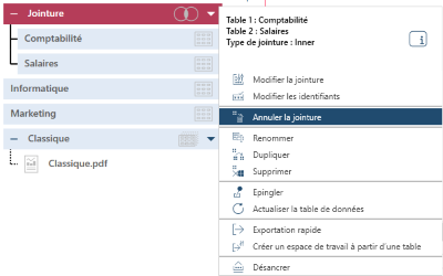 Si vous souhaitez modifier ou supprimer la jointure, sélectionnez l’option appropriée dans le menu déroulant en regard de la table de jointure.