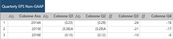 Les tables définies automatiquement contiennent parfois des valeurs de colonne qui ne vous intéressent pas. L’option Exclure du tableau permet d'y remédier facilement.