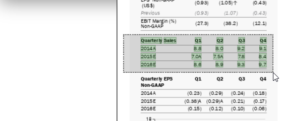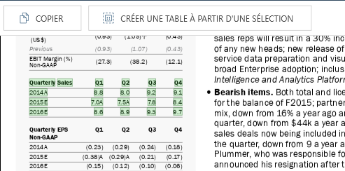 Sélectionnez le texte qui se trouve directement au-dessus d'une table :