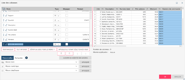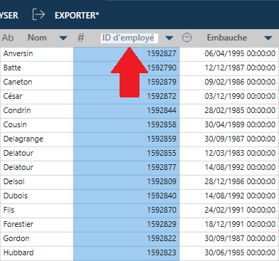 Sélectionnez le nom d'une colonne dans la colonne Nom de la colonne pour pouvoir modifier le nom de cette colonne, et attribuez un nouveau nom :