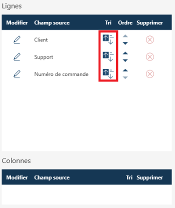 Cliquez sur l’icône de tri sur la droite de chaque champ que vous voulez trier.