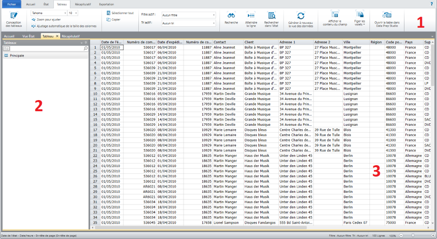 La vue Tableau vous permet de travailler avec le tableau généré par vos masques d'état. Depuis la vue Tableau, vous pouvez également cliquer sur Conception du tableau pour modifier votre tableau et ses champs.