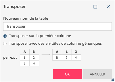 Sélectionnez Transposer pour afficher la boîte de dialogue Transposer :