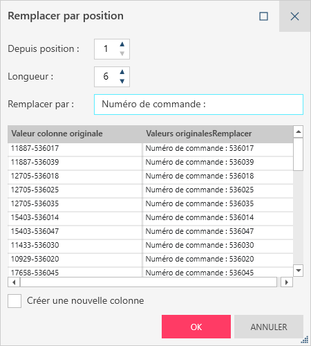 Utilisez la colonne d'aperçu pour vérifier l'opération de substitution :