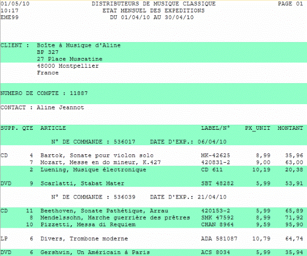 Lors de l'affichage d'un état dans la fenêtre d'état, la fonction Barre verte de Monarch Classic fournit une représentation de papier à barres vertes, faisant apparaître alternativement une barre sur fond vert et une barre sur fond blanc. Cette fonction peut être utile à l'affichage des états comportant peu de données, dans lesquels les nuances de couleur facilitent le suivi visuel de chaque ligne.