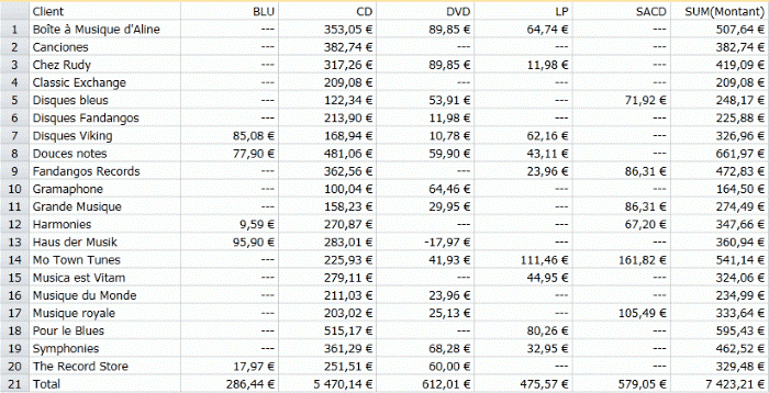 Un exemple de récapitulatif croisé est illustré ci-dessous.
