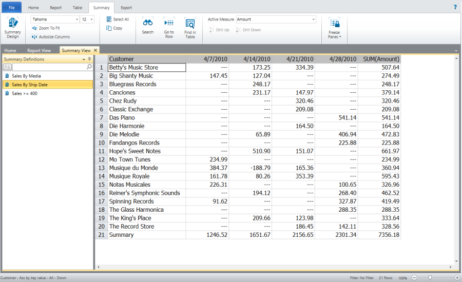 If you wish to view or edit just keys, items, or measures, select Keys, Items, or Measures respectively from the Summary Design ribbon.