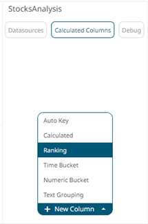The Ranking Column pane displays which lets you create new numeric columns based on ranking other columns in your data source. The rank is calculated for each row across each time period.