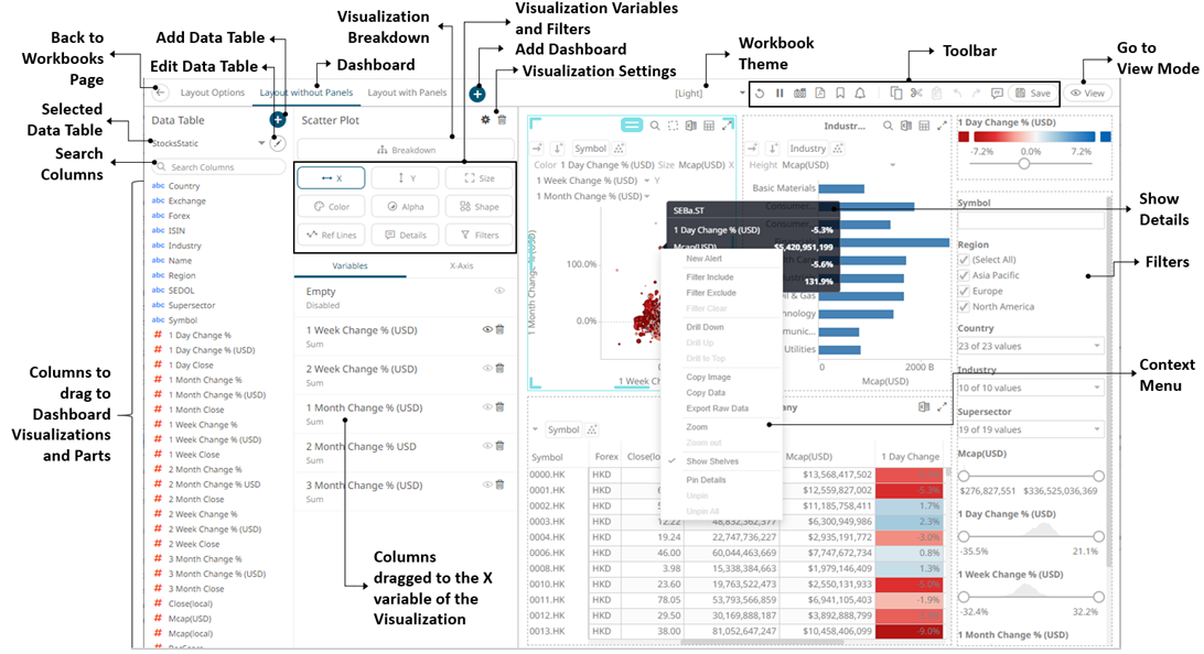 q Add, edit, and delete visualizations, filters, actions, and general parts on the dashboards