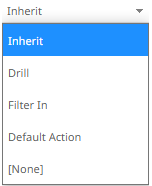 The action is inherited from the set double-click option under Workbook properties. The default is Drill. Other options are Filter In, Default Action, or None.