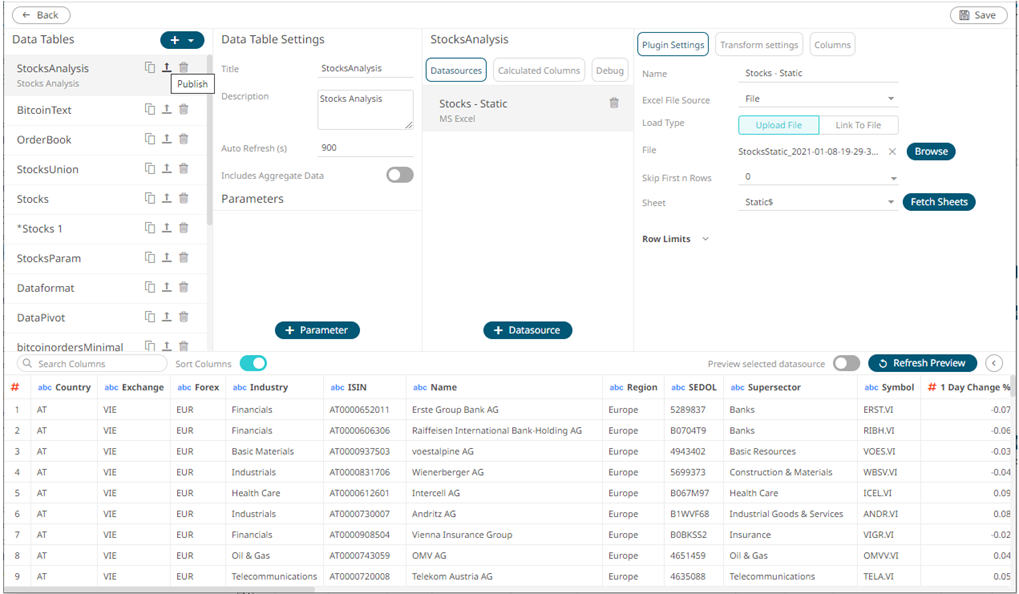 These data table templates can be accessed by all other Panopticon designers for use as a quick way of setting up a similar data table in any workbook. Currently, there are not access permission settings for data table templates and they are accessible from any folder.