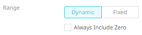 Check Always Include zero box to let the axis scale start at Zero, and grow to any number that may show up in the data. Or set between predefined limits by clicking Fixed. This displays the Min and Max text boxes that are populated with the default values taken from the data set.